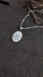 Handmade sterling silver oval star design pendant.